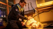 Am Ende der LügeNick (Raúl Richter) findet seine Jugendfreundin Sandra Mertens (Katharina Heyer) bewusstlos und gefesselt in der Apotheke, in der sie arbeitet.Bild: © ZDF und Boris Laewen./Boris Laewen