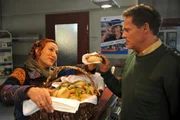BärendienstFrau Jansen (Christine Rothacker) möchte Peter (Christian Tramitz) Hamburger Fischbrötchen näher bringen. Der Bayer ist allerdings skeptisch.Bild: © ZDF und Boris Laewen./Boris Laewen
