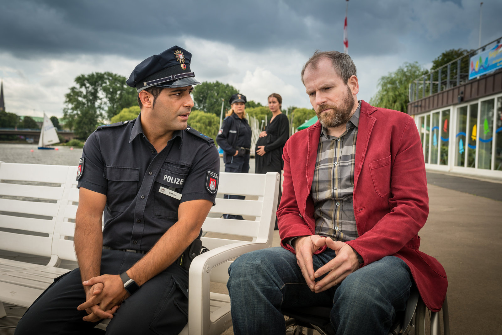 Ruhe sanftRainer Dorfmann (Thomas Limpinsel, r.) erzählt Tarik (Serhat Cokgezen, l.), dass er die Schuld am Tod seines Freundes trägt. Gerhard Höpfner ist bei einem Segelturn zusammengebrochen, er konnte ihm nicht helfen.Bild: © ZDF und Boris Laewen