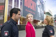 Kampf der HerzenJanne Abraham (Mareile Moeller, M.) bittet Claudia (Janette Rauch, r.) und Tarik (Serhat Cokgezen, l.) um einen Gefallen.Bild: © ZDF und Boris Laewen