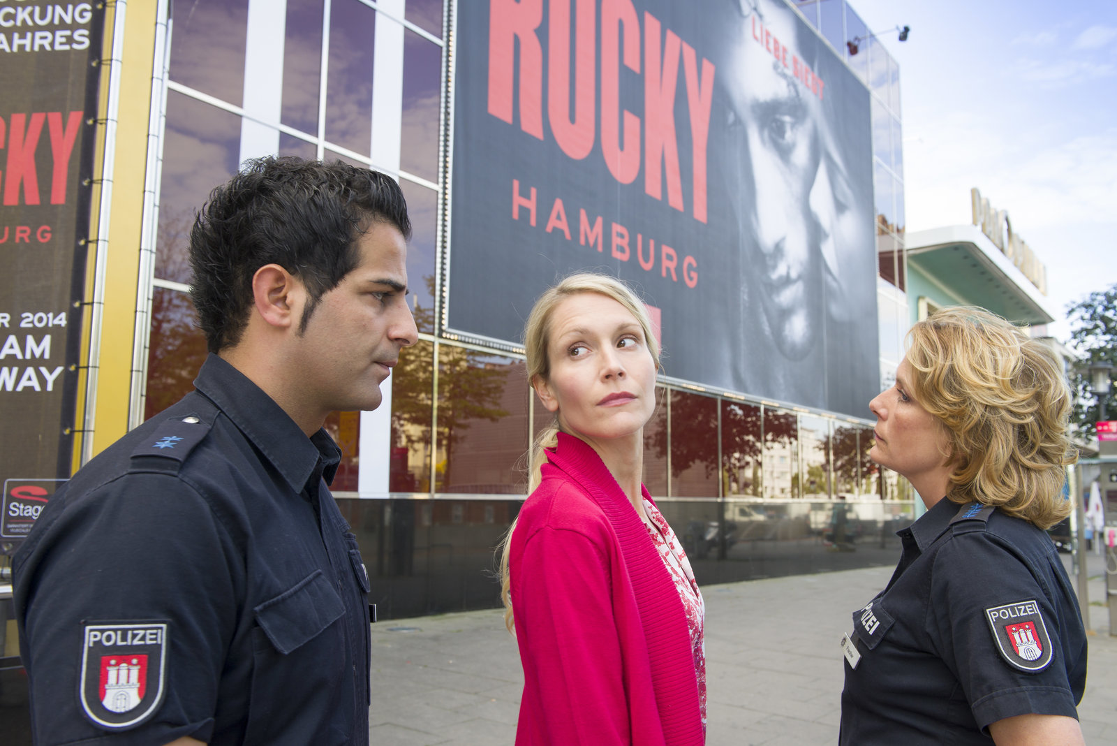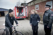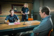 Außer KontrolleMelanie (Sanna Englund) und Mattes (Matthias Schloo, l.) befragen Christian Quas (Andy Gätjen, r.) zu dem Tod seines Sohnes, der an der gleichen Stelle wie die achtjährige Carina von einem Wagen angefahren wurde.Bild: © ZDF und Boris Laewen./Boris Laewen
