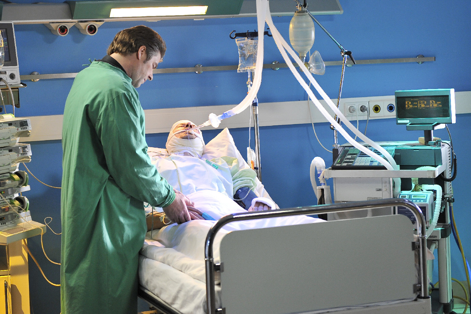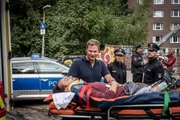 Zeit ist GeldJetzt ist Eile geboten: Während der Behandlung durch Dr. Haase (Fabian Harloff, 2.v.l.) verliert der Kurierfahrer Jan Wojcik (Kai Müller) das Bewusstsein.Bild: © ZDF und Christine Schroeder.