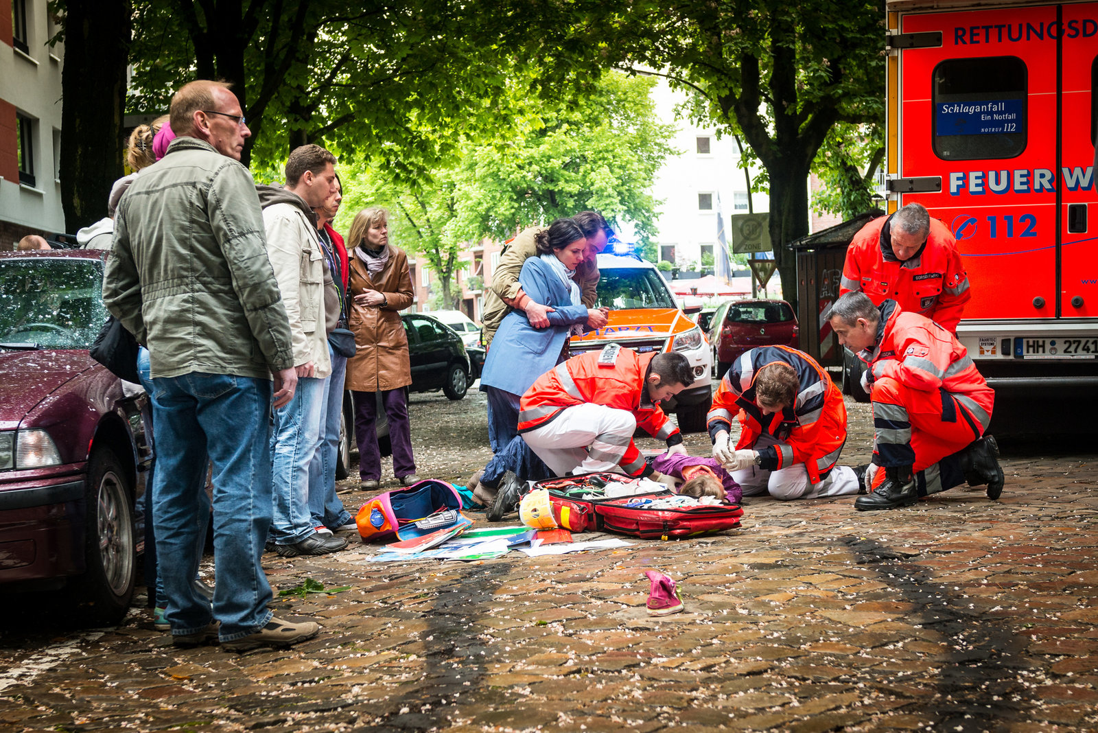 Außer KontrolleDr. Haase (Fabian Harloff, 3.v.r.) und seine Kollegen kümmern sich um die achtjährige Carina, die von einem Wagen angefahren und schwer verletzt wurde. Carinas Mutter Birgit (Liane Forestieri, m.) bangt um ihre Tochter.Bild: © ZDF und Boris Laewen