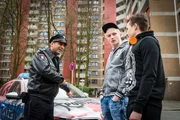 Der SuperheldAuf der Suche nach Denny muss Tarik (Serhat Cokgezen, l.) feststellen, dass die Jugendlichen (Anton Nürnberg, M. und Julius Römer, r.) dieser Gegend keinen Respekt vor der Polizei haben.Bild: © ZDF und Boris Laewen