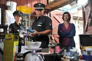 Schwarzer TodClaudia (Janette Rauch) und Tarik (Serhat Cokgezen, r.) kontrollieren die Bar und den dort angestellten Monty (Stefan Haschke, l.) wegen dem Verdacht auf gepanschten Alkohol.Bild: © ZDF und Boris Laewen