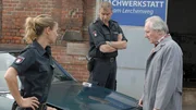 Nichts als die WahrheitFranzi (Rhea Harder, l.) und Boje (Frank Vockroth, M.) kommt der Werkstattbesitzer und Unfallgutachter Herbert Reinicker (Wolfgang Krassnitzer, r.) komisch vor.Bild: © ZDF und Boris Laewen/Boris Laewen