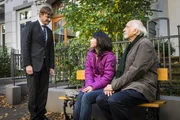 Rufis WGSören Wielich (Christian Beermann, l.) möchte sich bei Sai (Young-Mi Park) für das Verhalten seines Vaters entschuldigen. Rufi (Karl Dall, r.) kann das Verhalten seines Mitbewohners auch nicht nachvollziehen.Bild: © ZDF und Boris Laewen
