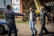 Außer KontrolleMelanie (Sanna Englund) und Mattes (Matthias Schloo, l.) befragen Christian Quas (Andy Gätjen, r.) zu dem Tod seines Sohnes, der an der gleichen Stelle wie die achtjährige Carina von einem Wagen angefahren wurde.Bild: © ZDF und Boris Laewen