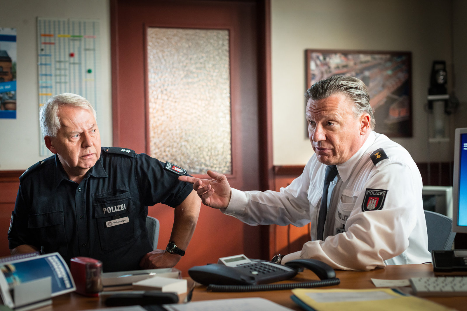 FingerspitzengefühlMit Wolle (Harald Maack, l.) als Zeuge hat Haller (Hannes Hellmann, r.) einen Weg gefunden, den Korruptionsverdacht gegen einen Kollegen nicht selbst melden zu müssen.Bild: © ZDF und Boris Laewen