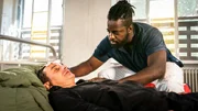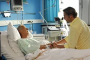 In der SchusslinieDr. Schmidt (Joel Williams, r.) macht sich Sorgen um seinen Patienten (Wolfgang Boos, l.), der wegen einer Schussverletzung viel Blut verloren hat.Bild: © ZDF und Boris Laewen./Boris Laewen