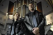 GeisterstundeMelanie (Sanna Englund, 2.v.l.) und Mattes (Matthias Schloo, 2.v.r.) ermitteln in einem unglaublichen Fall: In der Kirche von Pastor Lammers (Ilja Richter,r.) soll es nach Ansicht seiner Haushälterin Marianne Schönkopf (Maria Gruber, l.) spuken.Bild: © ZDF und Boris Laewen