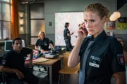 Hart an der KanteKai (Markus Knüfken) und Melanie (Sanna Enlgund, r.) befragen Angelika Brandhus (Astrid M. Fünderich, l.) und suchen im Zimmer ihres Sohnes Tim nach Hinweisen auf seinen Aufenthaltsort.Bild: © ZDF und Boris Laewen