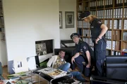 Herz an HerzNils (Thomas Scharff, M.) und Melanie (Sanna Englund, l.) durchsuchen im Beisein von Brumunds Anwältin Schneider (Mignon Remé, r.) dessen Wohnung nach Hinweisen.Bild: © ZDF und Boris Laewen