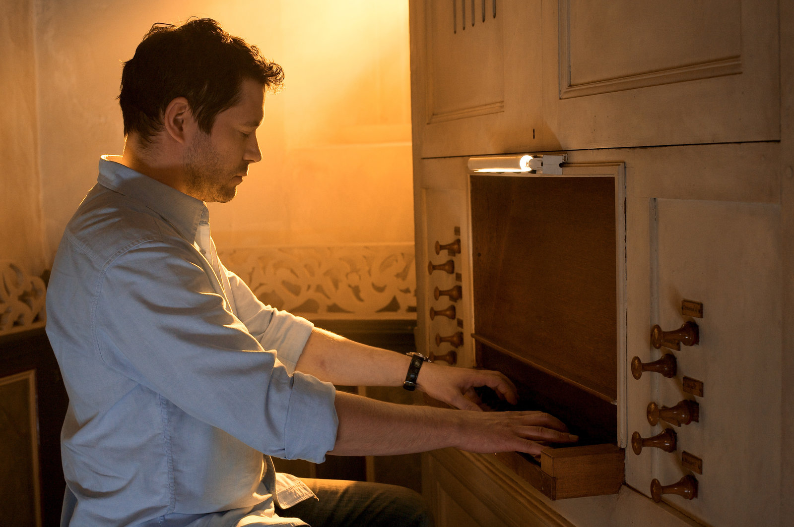DoppellebenChristoph (Thomas Koch) beeindruckt Melanie mit seinem Orgelspiel.Bild: © ZDF und Boris Laewen