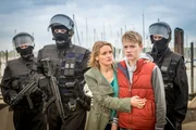 ScheißtagKatrin Volland (Caroline Scholze) ist froh, dass ihr Sohn Emil (Bruno Alexander) unbeschadet von dem Segelboot gekommen ist, bevor das SEK zugreifen musste.Bild: © ZDF und Boris Laewen