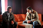 Zwischen Leben und TodHans (Bruno F. Apitz, l.) will dem Bruder eines alten Freundes, Torsten Kranz (Jörn Hentschel, r.), helfen und gerät in eine Schießerei.Bild: © ZDF und Boris Laewen/Boris Laewen