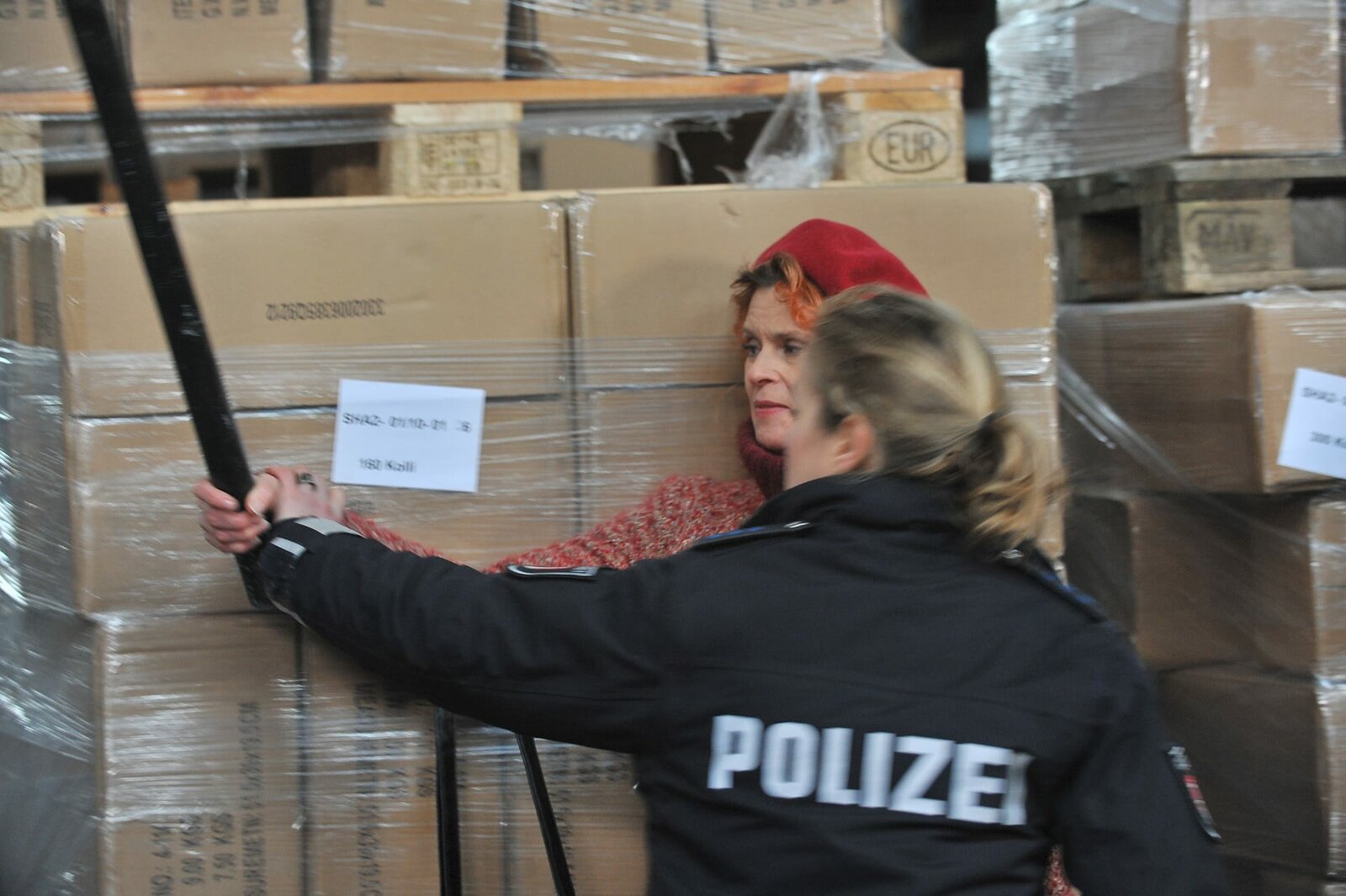 Die tätowierte FrauFrau Mahler (Leslie Malton, hinten) will fliehen, was Franzi (Rhea Harder, vorne) versucht zu verhindern.Bild: © ZDF und Boris Laewen-bola./Boris Laewen-bola