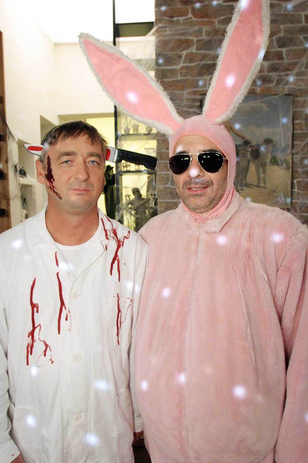 Maskerade"Novotny und Maroudi", "Maskerade." Stefan und Gerald schlagen bei ihrer Halloweenparty eindeutig über die Stränge und sind alkoholbedingt nicht mehr ganz Herr ihrer Sinne. Als am nächsten Morgen beide neben einer Frau aufwachen, ist das Erstaunen groß. Noch größer, da Stefan ausgerechnet mit Geralds Exfrau Valerie im Bett liegt und Gerald neben Stefans derzeitiger unsterblicher Liebe Brenda. Ob etwas und wenn ja was in der vergangenen Nacht passiert ist, kann sich allerdings keiner der beiden Helden so recht erinnern.Im Bild (v.li.): Andreas Vitásek (Dr. Gerald Novotny), Michael Niavarani (Dr. Stefan Maroudi).Bild: © ORF 1