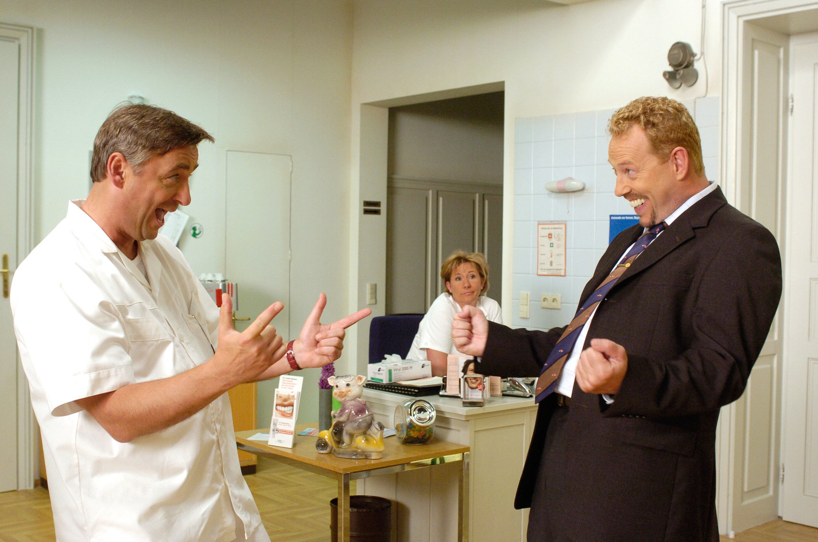 Umzüge"Novotny und Maroudi", "Umzüge." Dr. Gerald Novotny steht als Frischgeschiedener vor den Trümmern seines Lebens. Und weil seine Ex üblicherweise nicht lange fackelt, türmt sich auch ein Haufen Übersiedlungsgut inmitten der Zahnarztpraxis, die er gemeinsam mit seinem Studienfreund Stefan Maroudi führt. Unglücklicherweise hat Gerald noch nicht daran gedacht, sich um eine neue Wohnung umzusehen. Also springt Stefan ein und bietet seinem Freund das Gästezimmer in seiner Wohnung an. Nur vorübergehend, versteht sich.Im Bild (v.li.): Michael Niavarani (Dr. Stefan Maroudi), Andreas Vitásek (Dr. Gerald Novotny).Bild: © ORF eins