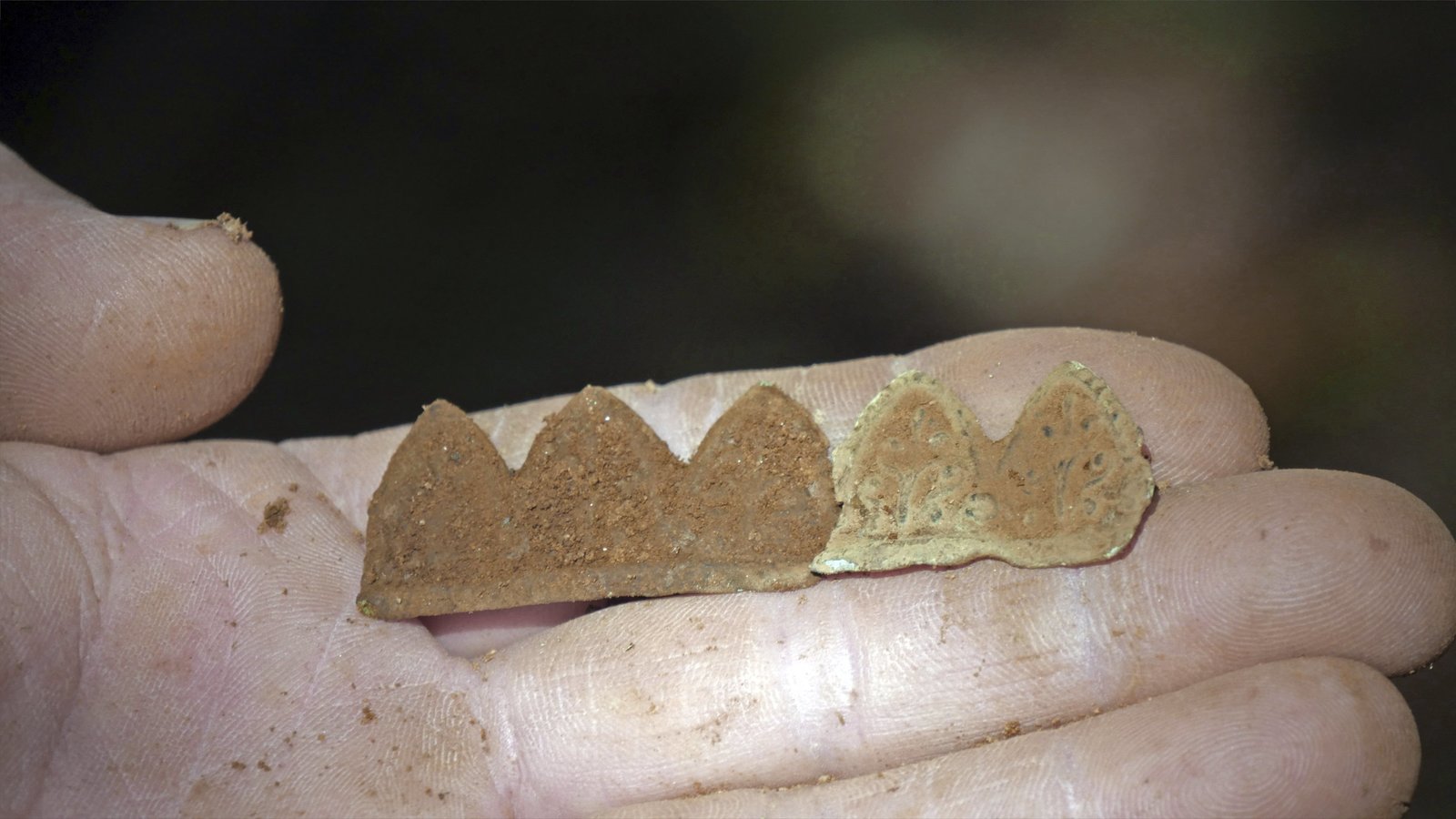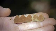 Mitten im MorastBei den Ausgrabungen finden Rick (l.) und sein Team einen Stein,in den ein Symbol eingeritzt wurde, das mit den Kreuzrittern in Verbindung gebracht wird. Kommen sie dem Schatz von Oak Island nun etwas näher?Bild: © 2016 A&E Television Networks, LLC. All Rights Reserved Lizenzbild frei
