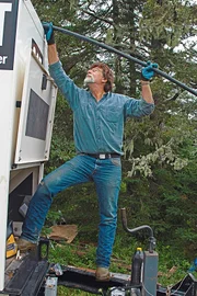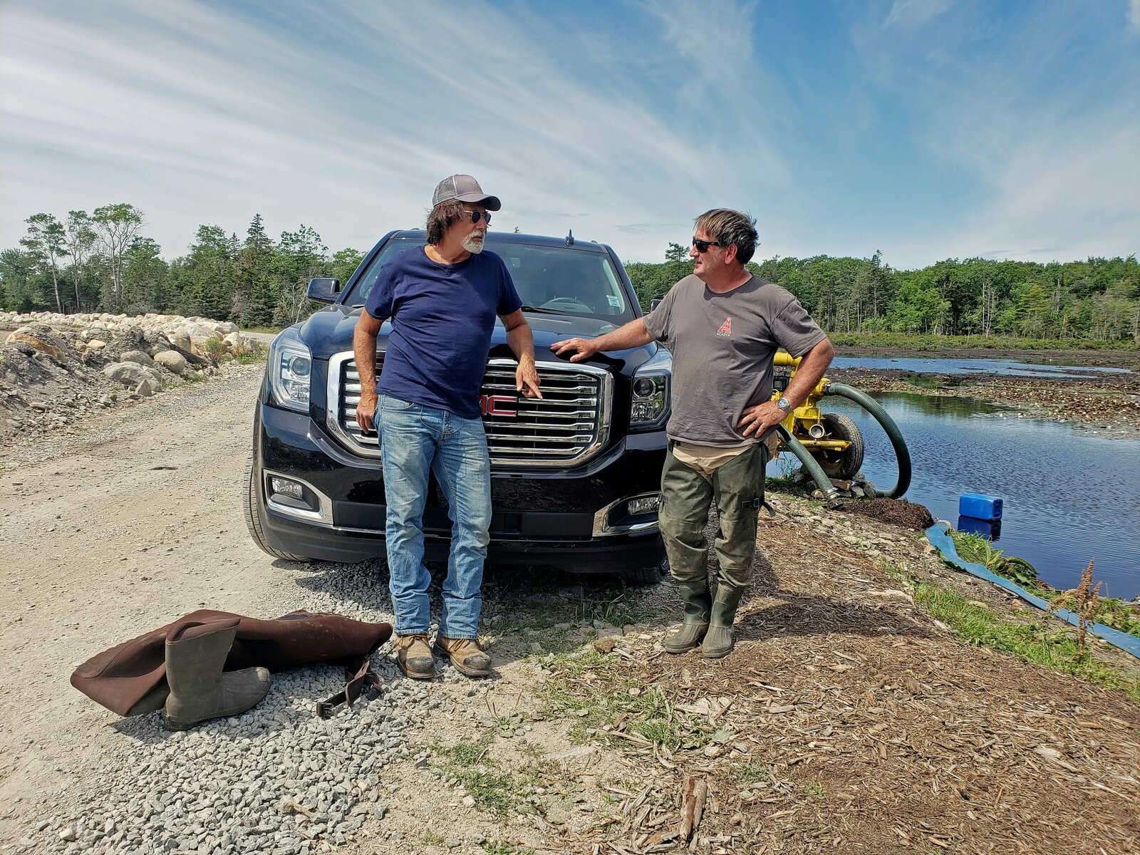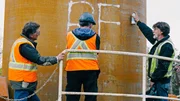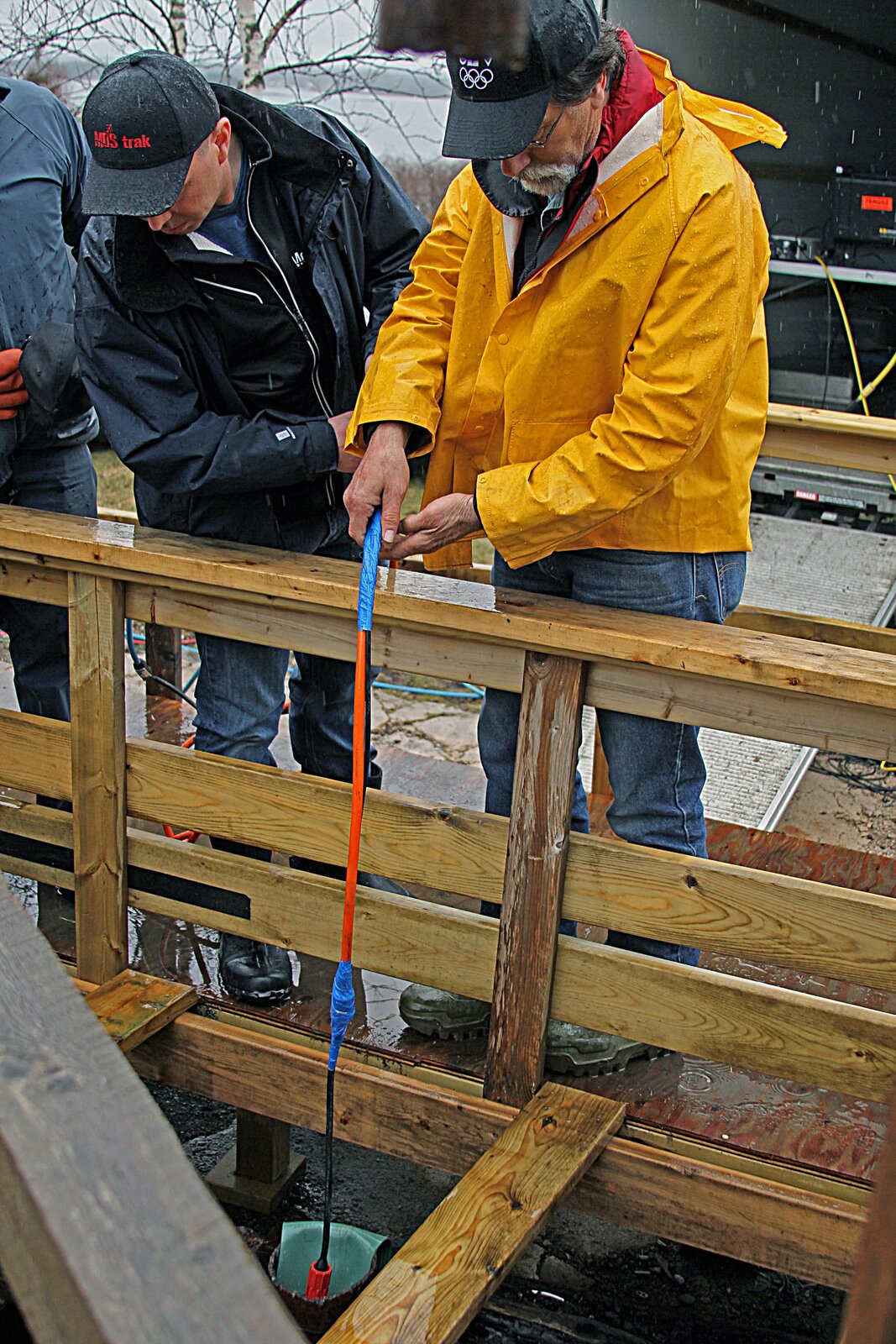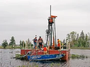 Gefährlicher TauchgangMarty und Rick Lagina (r.) mieten gemeinsam mit ihren Partnern eine Bohranlage, um Proben aus ungefähr 40 Metern Tiefe in der Nähe des "Money Pit" zu entnehmen und so die Lage des ursprünglichen Schachts zu bestätigenBild: © 2014 A&E Television Networks, LLC. All Rights Reserved/ PROMETHEUS ENTERTAINMENT Lizenzbild frei