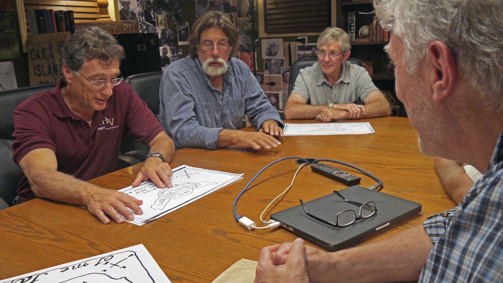 BindegliedDie Brüder Rick (2.v.r.) und Marty Lagina (r.) besitzen den größten Teil der mysteriösen Insel namens "Oak Island". Sie sind entschlossen, dort die 200 Jahre alte Suche nach einem Schatz wieder aufzunehmen und untersuchen den stillgelegten Schacht "10-X".Bild: © 2014 A&E Television Networks, LLC. All Rights Reserved/ PROMETHEUS ENTERTAINMENT Lizenzbild frei