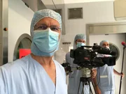 Sterile Kleidung auch für das ORF-Gestalterteam während einer Transplantation. Von re nach li: Dietmar Öfner, Mike Mayer (Kamera) und Georg Laich .Bild: © ORF/ORF-Tirol