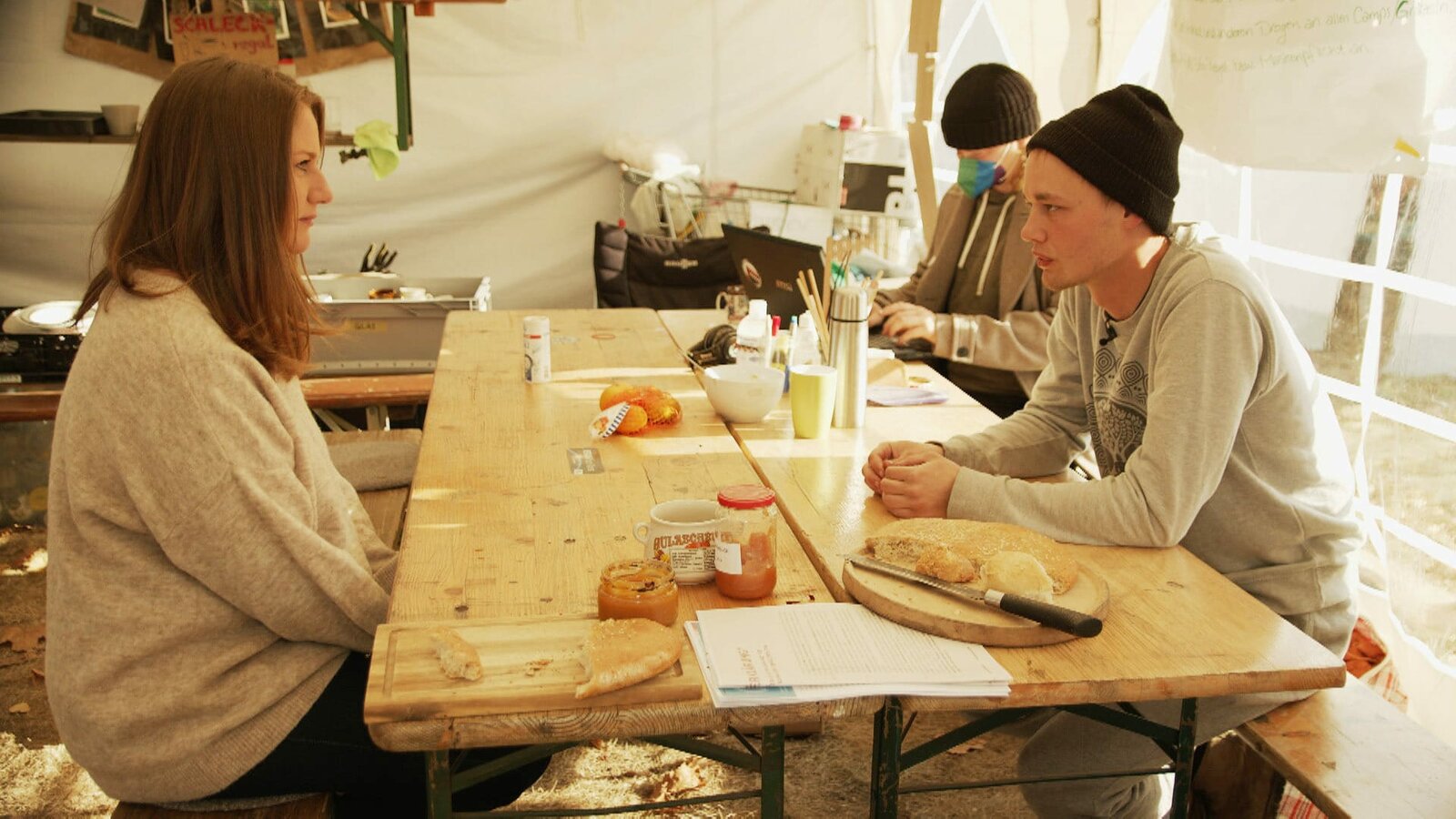 Die KlimaaktivistInnen und Gegner der Stadt- und Lobauautobahn haben ein Basiscamp errichtet. Hier gibt es laufend Treffen und Besprechungen, wie der Protest aufrecht erhalten wird. Ulrike Dobeš spricht mit den BesetzerInnen über deren persönliche Motive und warum viele auch eine kurze Auszeit vom Protest brauchen.Bild: © ORF/ORF-Wien