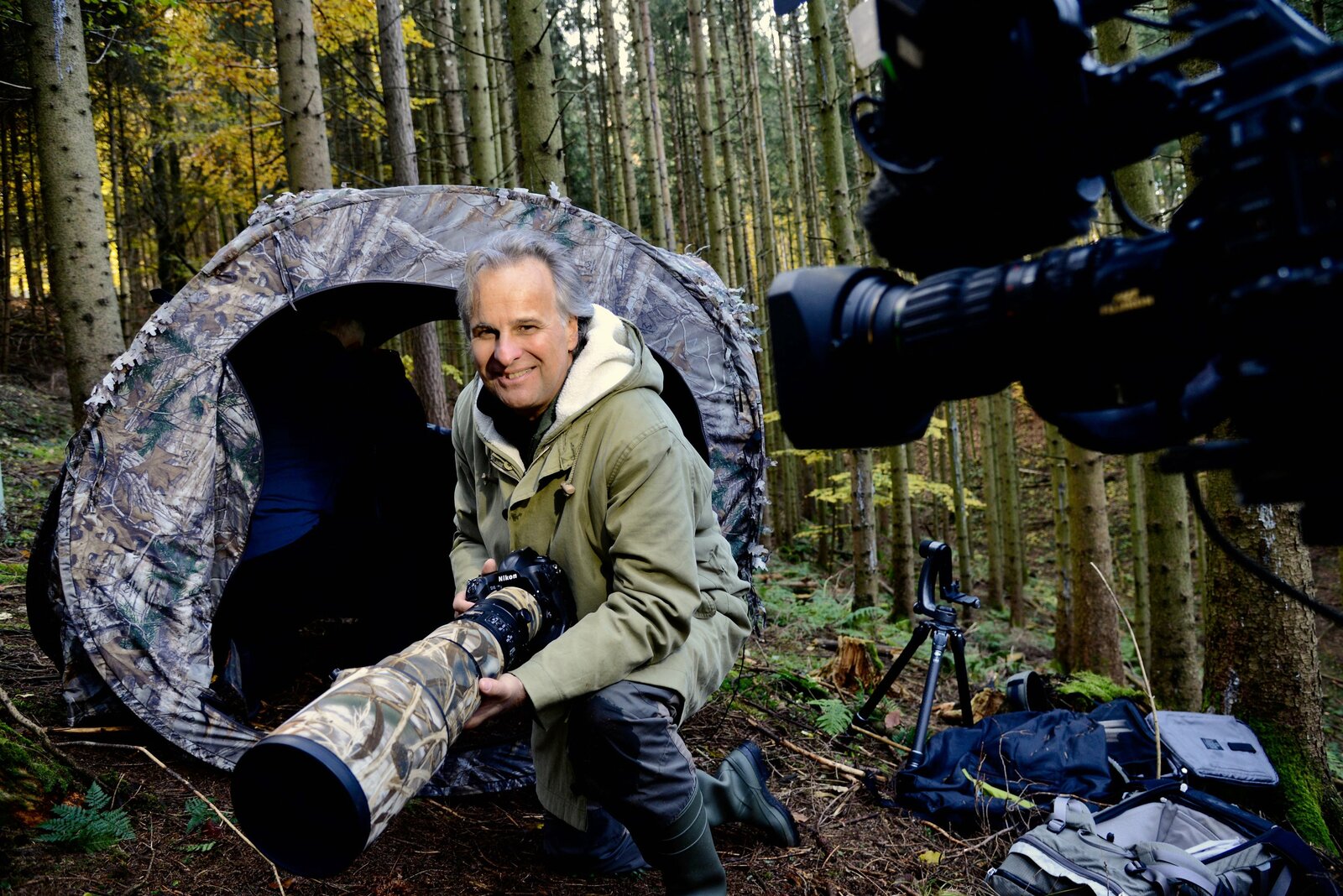 Naturfilmer Erich Pröll während der Drehpause am Kasberg.Bild: © ORF/Landesstudio Oberösterreich