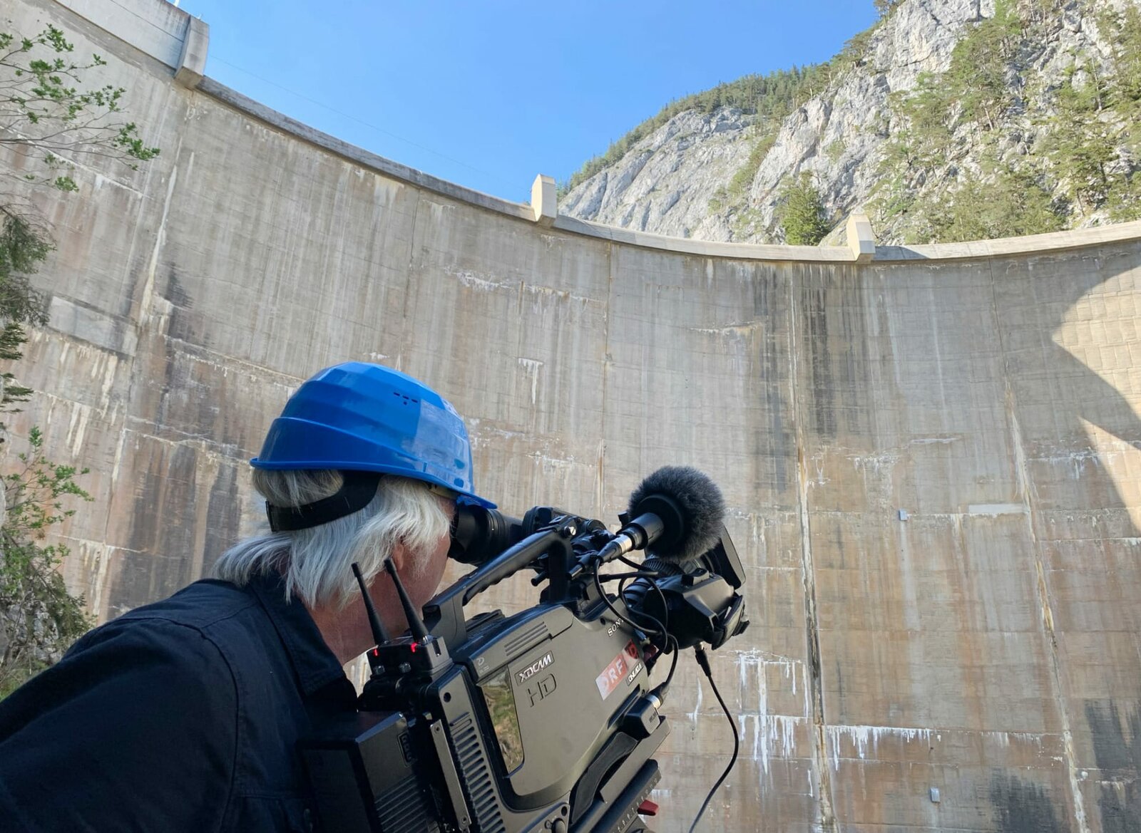 Kameramann Erhard Seidl bei Dreharbeiten bei der Staumauer des Kraftwerks SalzaBild: © ORF/ORF- Steiermark