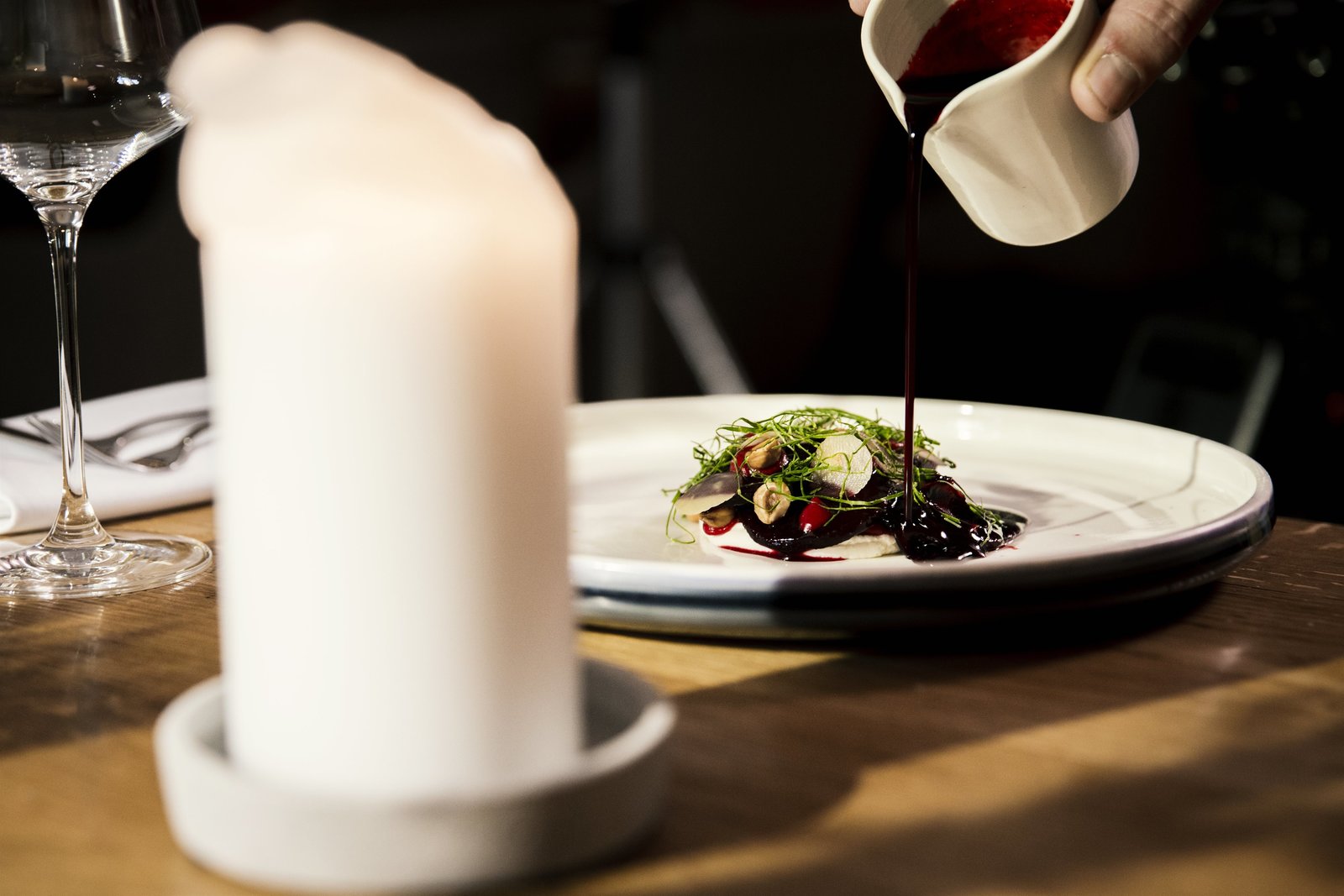 Folge 4Ein Gericht aus der Küche von Thomas Hofer - Fisch mit Variationen von der roten Rübe.Bild: © ServusTV / Manuel Seeger