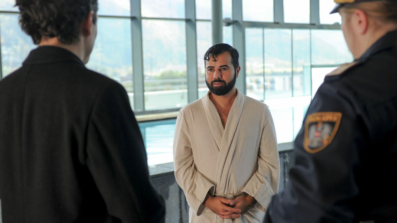 Das dunkle Paradiesv.li.: Martin Merana (Manuel Rubey), Khaleed (Morteza Tavakoli), Franziska Heilmayr (Stefanie Reinsperger).Bild: © ORF/Epo Film/Alfons Kowatsch