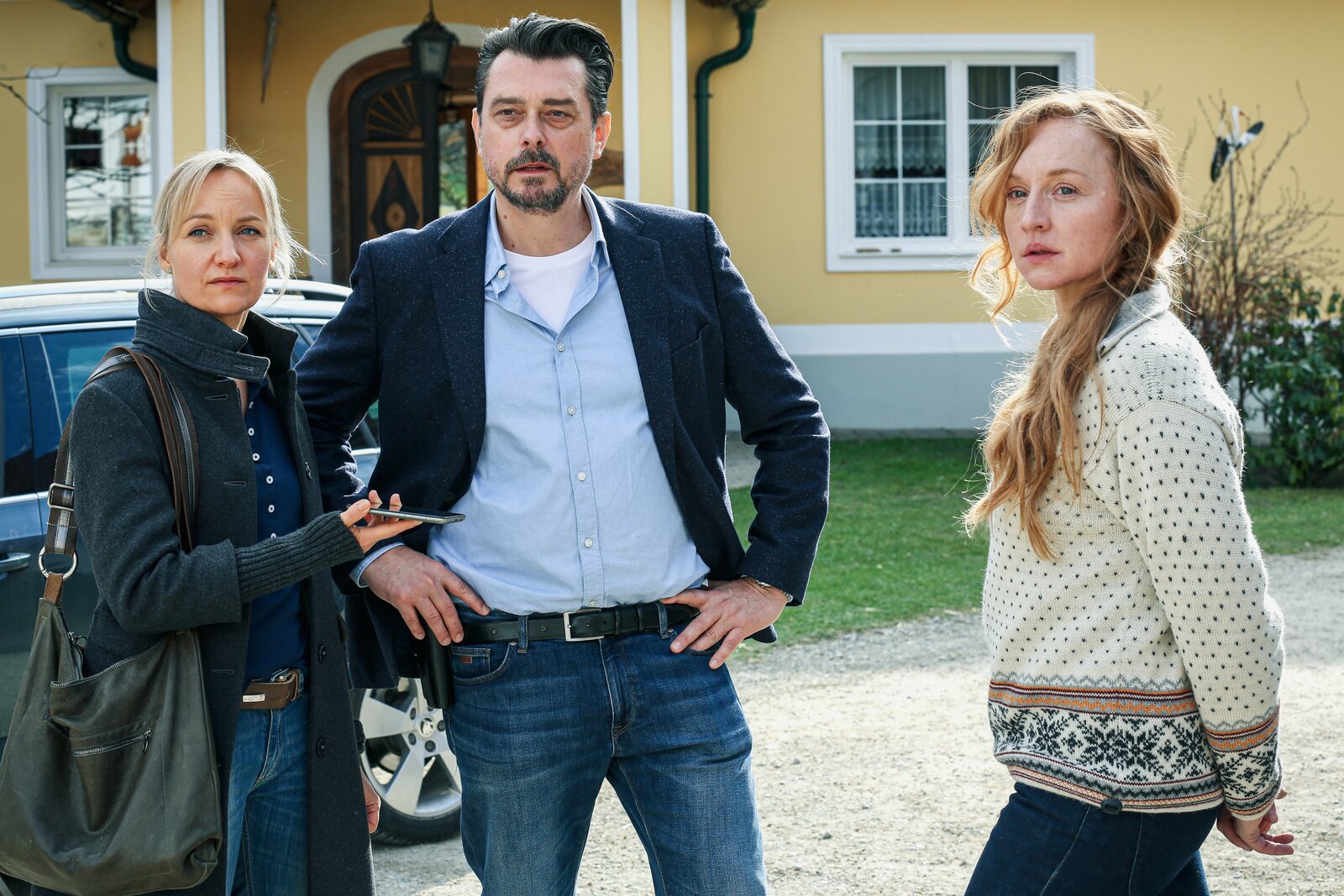 Steirerwut"Steirerwut", Ein Bauer hängt in der Scheune am Strick. Schnell ist klar, dass es kein Selbstmord war. Der Bauer war ein Quergeist und hat in der Ortschaft viele Feinde. Auch in der eigenen Familie gibt es Verwandte mit Tatmotiven. Der Täter ist im Vortäuschen des Selbstmordes sehr geschickt. Die Hauptverdächtigen haben Alibis.Im Bild (v.li.): Eva Herzig (Eva Merz), Hary Prinz (Sascha Bergmann), Brigitte Hobmeier (Lotte).Bild: © ORF 1