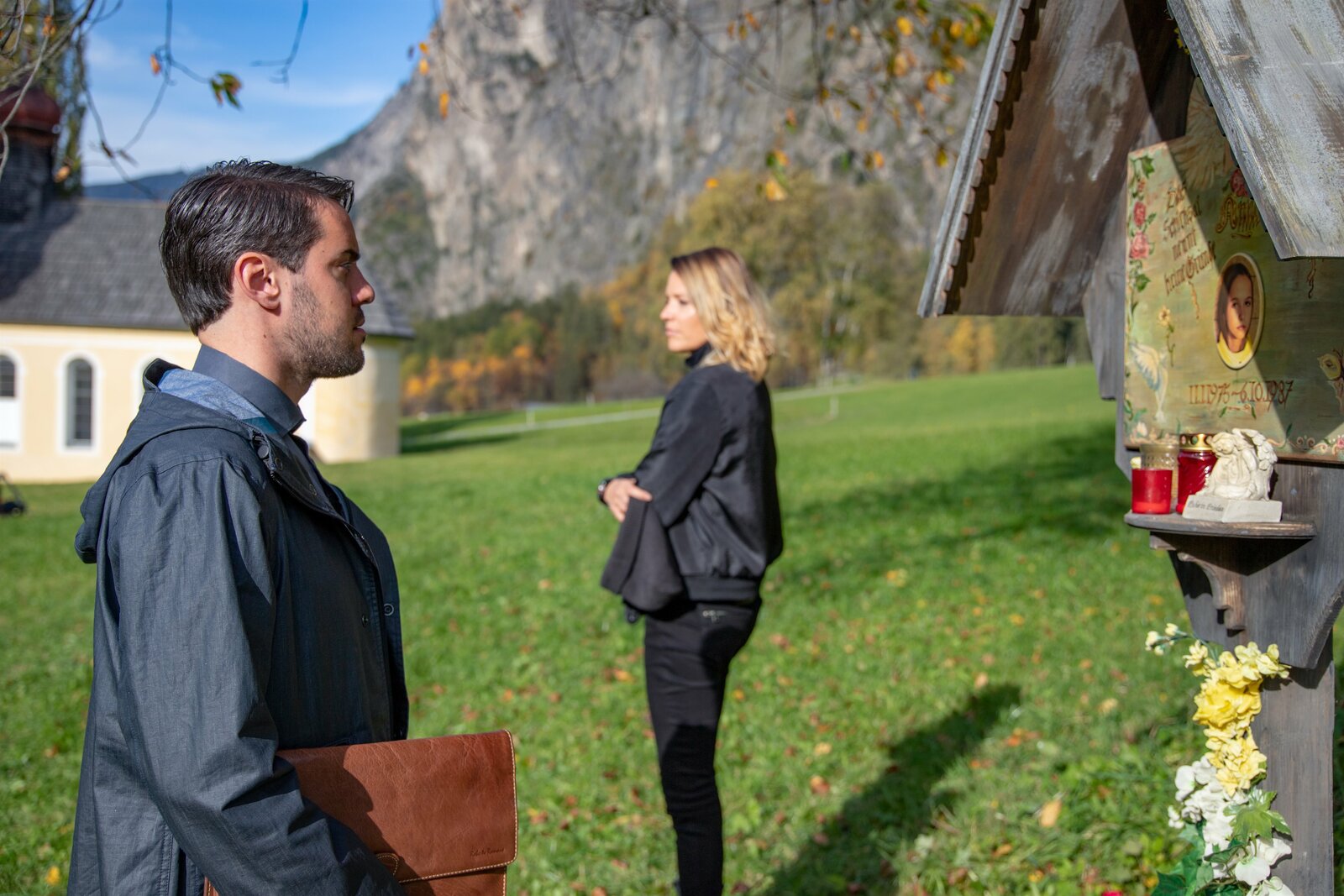 SteirerkreuzHermann Fürst (Daniel Keberle) und Magdalena (Anna Rot) fürchten, dass eine alte Geschichte hochkommt.Bild: © ARD Degeto/Allegro Film/Stefan Haring