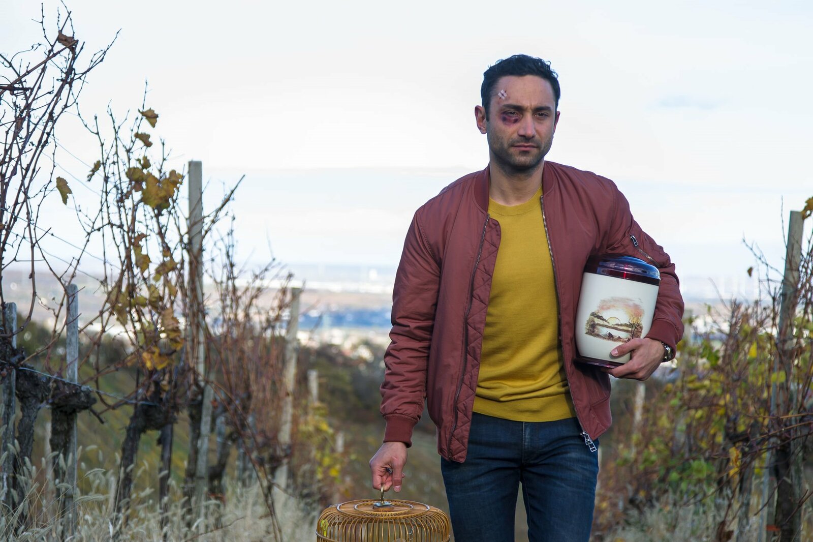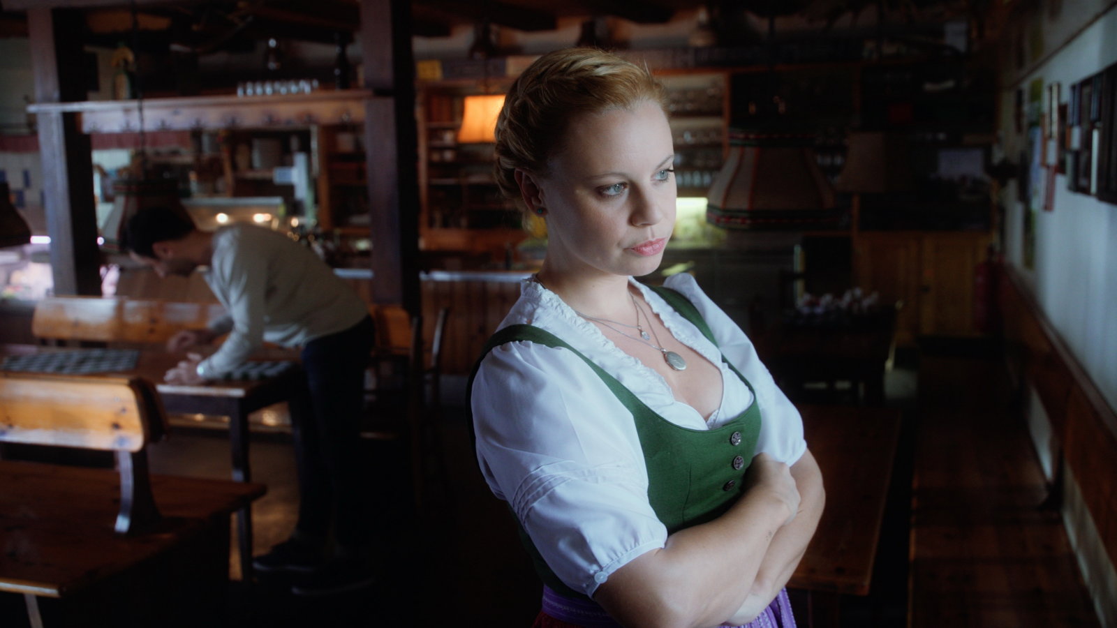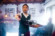 Herrgott für AnfängerMusa (Deniz Cooper) hilft als Kellner im Heurigen "Reblaus" aus.Bild: © BR/Lotus-Film/ORF/Jana Madzigon / Jana Madzigon