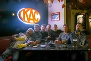 Harri Pinter, DrecksauTim Williams (Ken Meyers), Andreas Lust (Norbert Flasch) und Juergen Maurer (Harri Pinter) sitzen mit Freunden am Stammtisch.Bild: © ORF 1