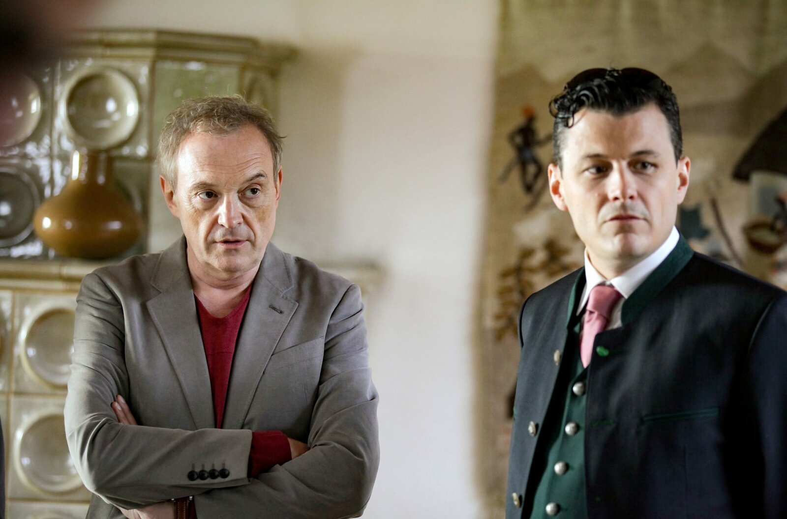 Die NotlügeDass auch noch der Bezirksvorsteher (Manuel Rubey) kommen und Leutseligkeit versprühen muss, nervt Hubert (Josef Hader), der den anderen schon früher nicht leiden konnte.Bild: © SWR/ORF/Stefan Haring