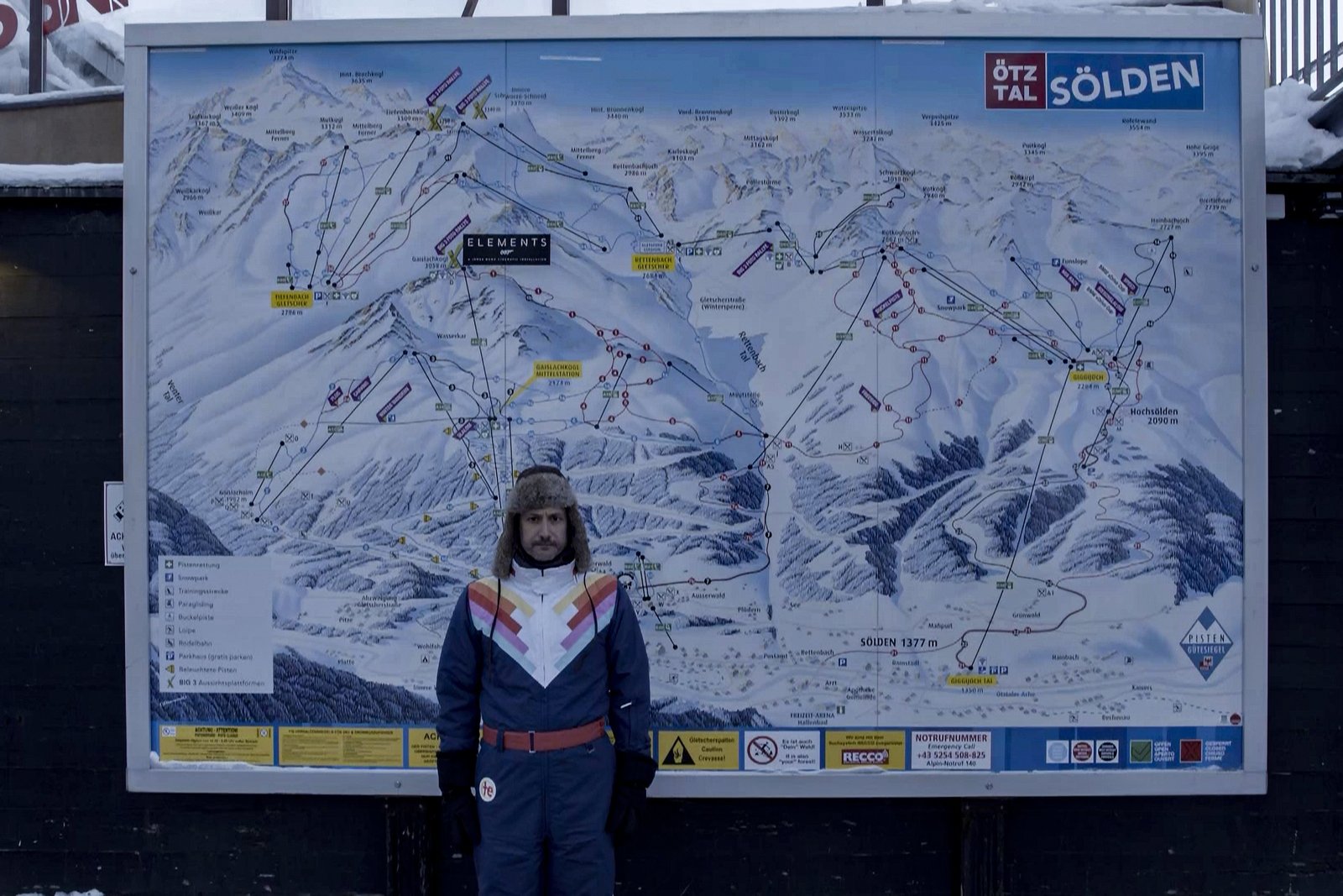 In SöldenMichael Ostrowski vor der Skigebiet-Karte von SöldenBild: © ServusTV / Neulandfilm