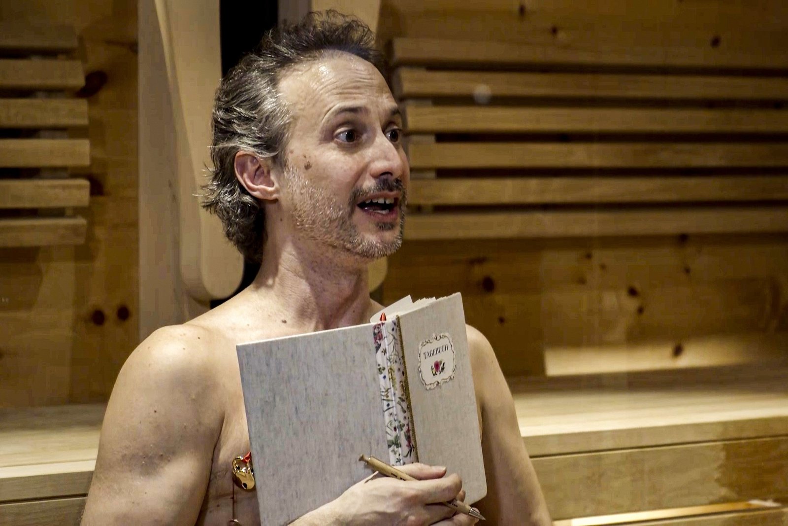 In SöldenMichael Ostrowski sucht Entspannung in der SaunaBild: © ServusTV / Neulandfilm