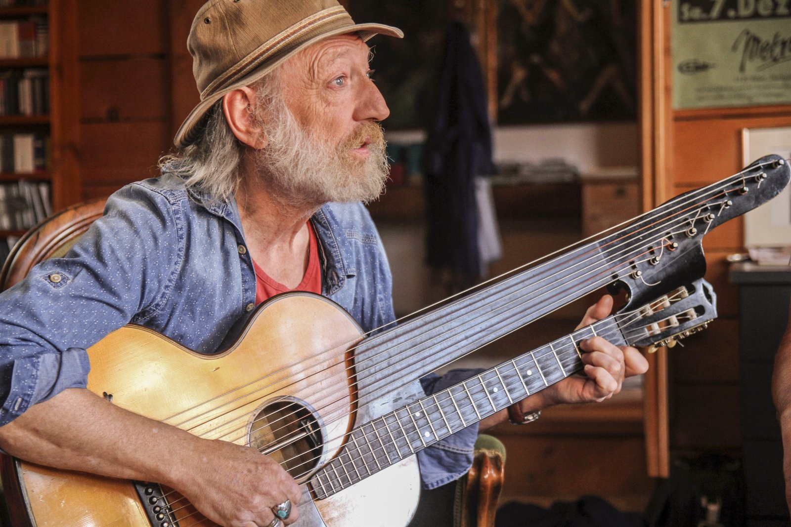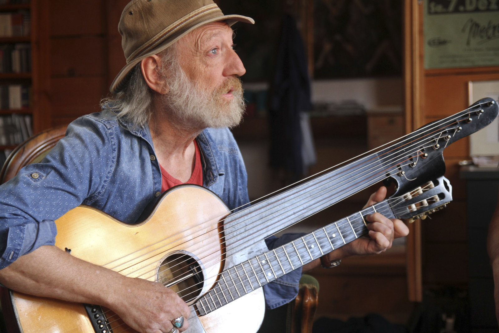 Von Extremschrammlern und GstanzlartistenRoland Neuwirth spielt ein Lied in seinem MusikzimmerBild: © ServusTV / FCKW Filmproduktion