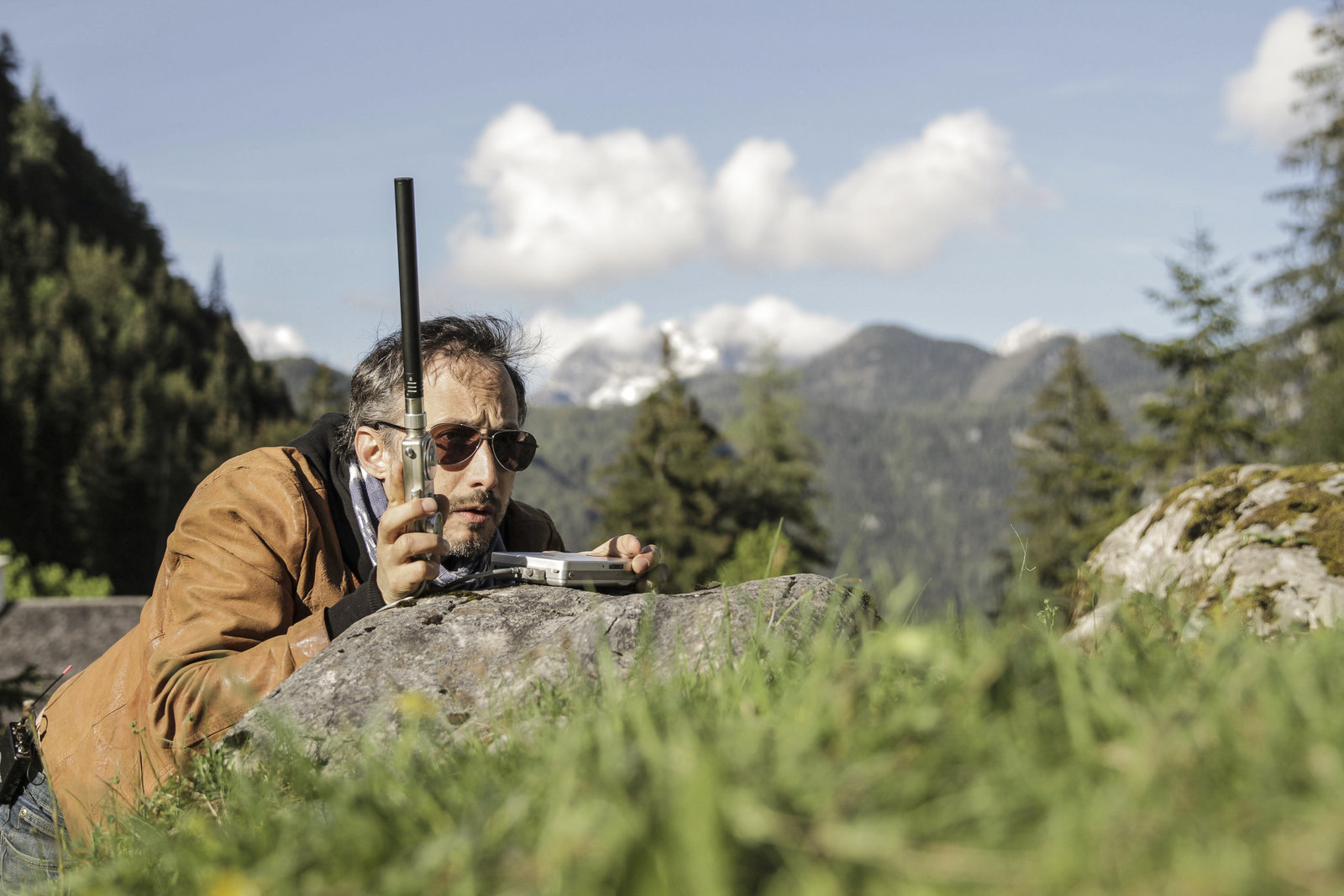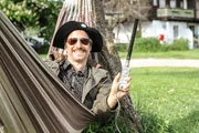 HeimatMichael Ostrowksi hat es sich in der Haengematte bequem gemacht und lauscht von dort aus dem Jodeln des Ehepaars Berger. Er nimmt die Musik ausserdem mit seiner Mini-Nagra aufBild: © ServusTV / FCKW Filmproduktion