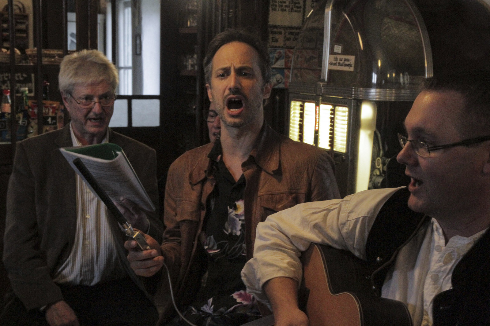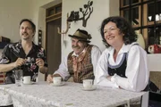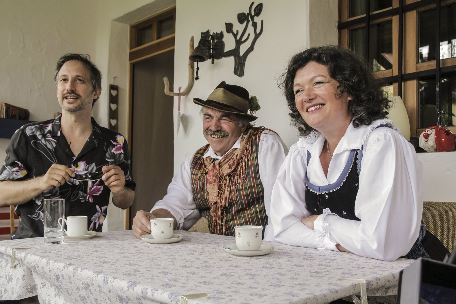 Von Extremschrammlern und GstanzlartistenMichael Ostrowski (li), Guenther Zimmermann (mitte) und Chor Sprecherin Claudia Leitner (re). Sie sprechen ueber das Hochzeitsbrauchtum und die zugehoerige Musik im GailtalBild: © ServusTV / FCKW Filmproduktion