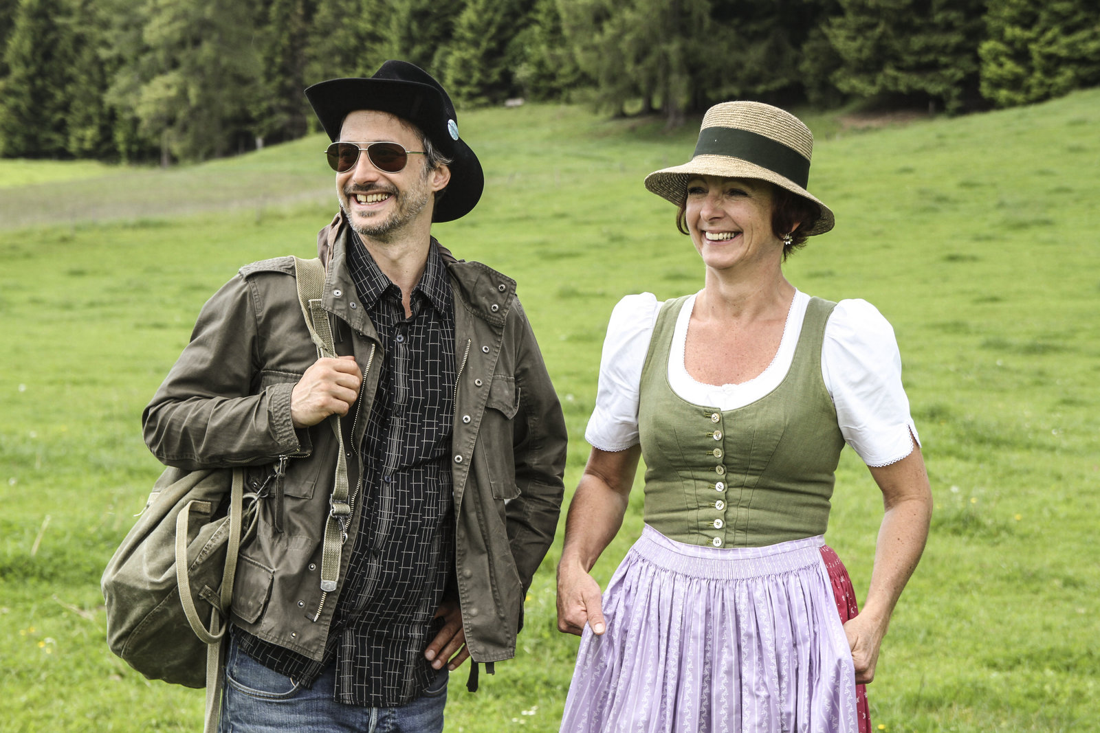 HeimatClaudia Berger (re) und Michael Ostrowski (li) am idyllischen Frienerhof in Ramsau am DachsteinBild: © ServusTV / FCKW Filmproduktion