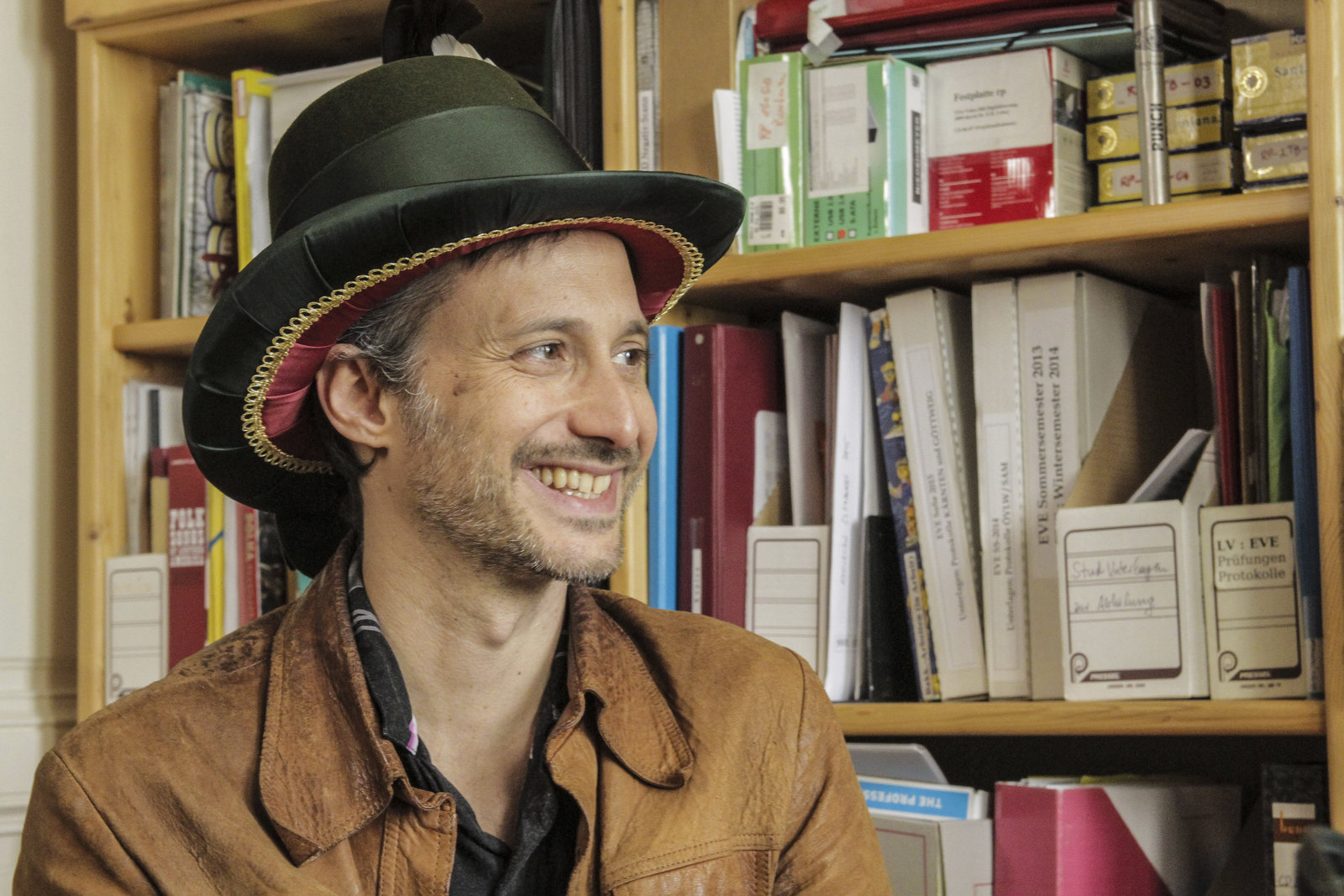 Von Extremschrammlern und GstanzlartistenMichael Ostrowski traegt den Konrad Mautner Hut den er von Pietsch bekommen hat.Bild: © ServusTV / FCKW Filmproduktion