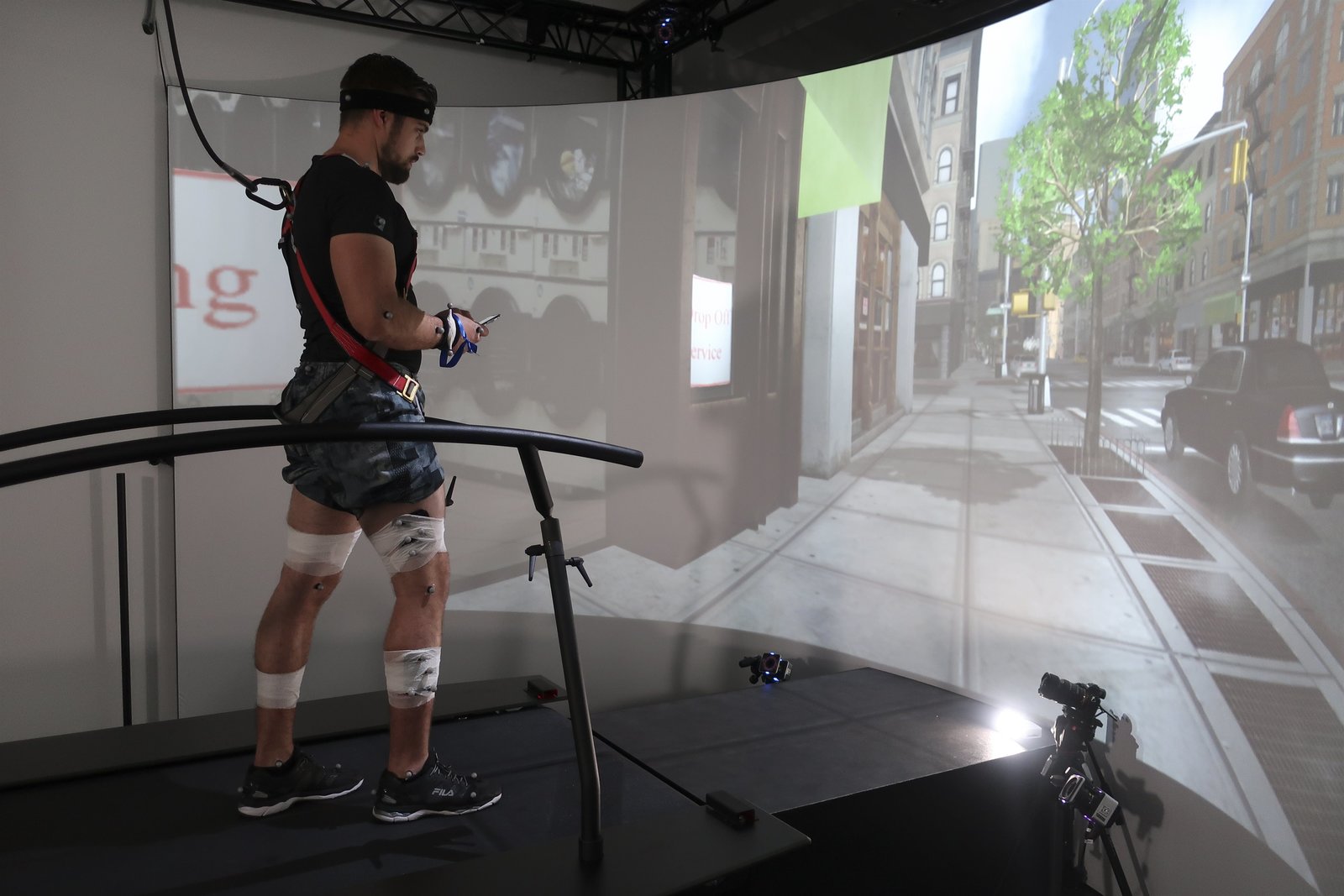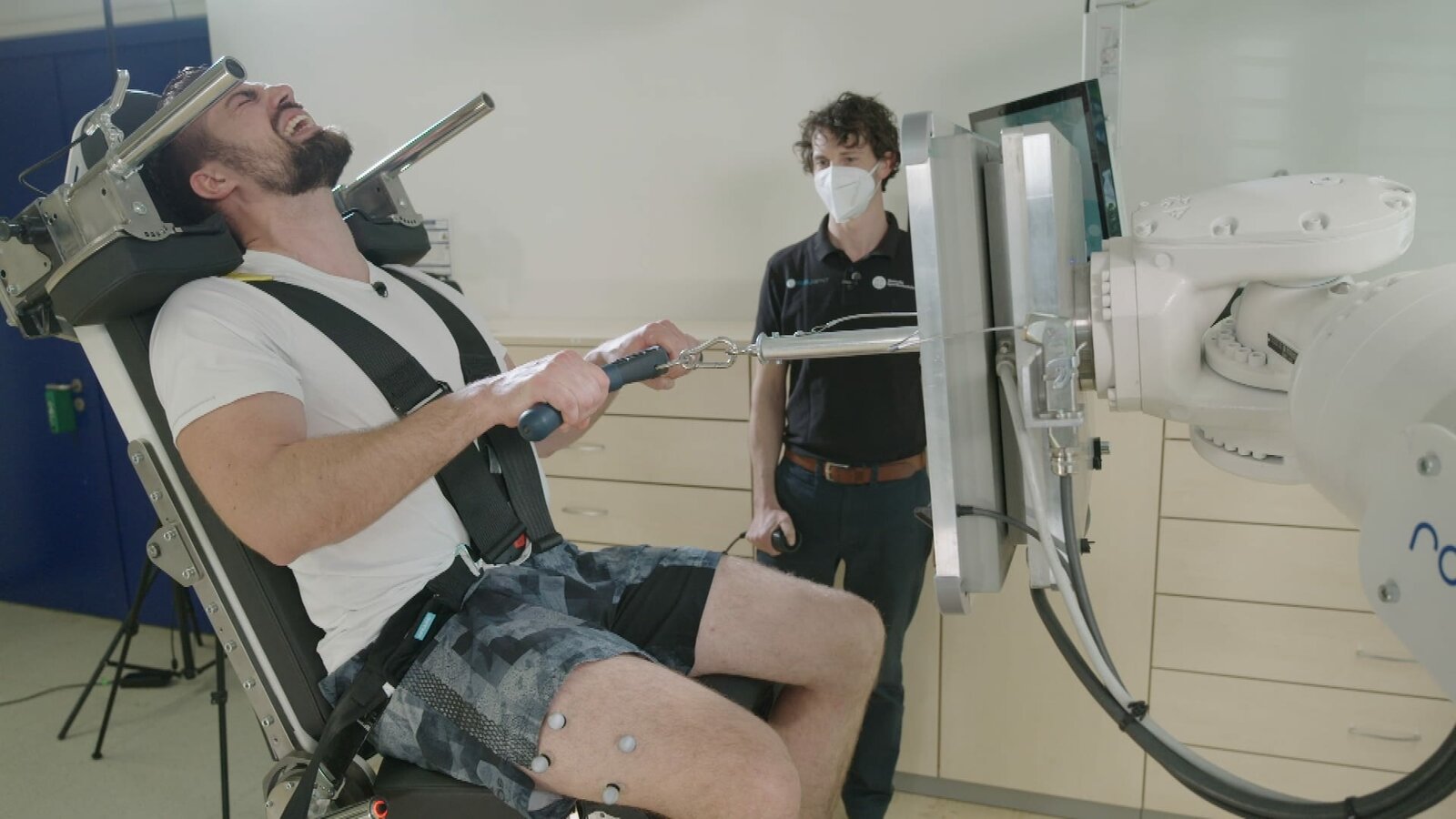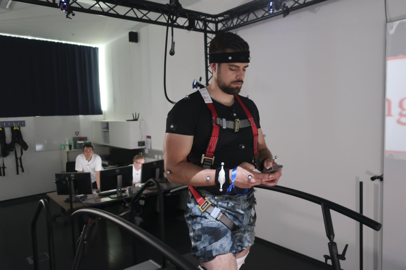 Folge 82Reporter Philipp McAllister besucht Klaus Widhalm in dem weltweit einzigartigen Bewegungslabor der FH Campus Wien. Ausgestattet mit Motion Capture Markern, die Aufschluss über sein Gehverhalten liefern, muss Philipp dort aufs LaufbandBild: © ServusTV / Bilderfest