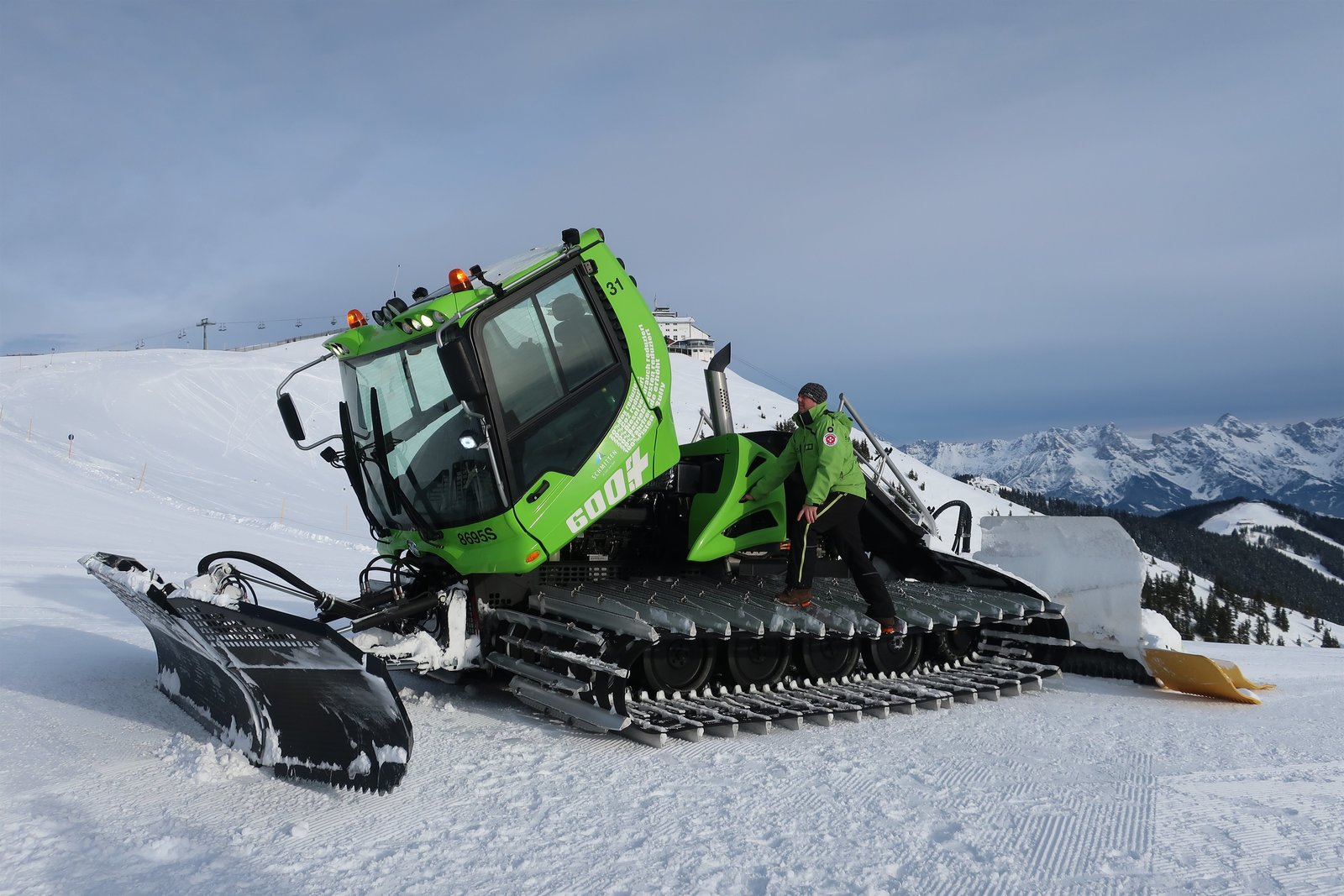 Folge 1520 Prozent weniger Kraftstoffverbrauch und ein besseres Fahrgefühl: Pistenraupen-Fahrer Hannes Mayer ist begeistert von der neuen Hybrid-Technik.Bild: © ServusTV / Bilderfest