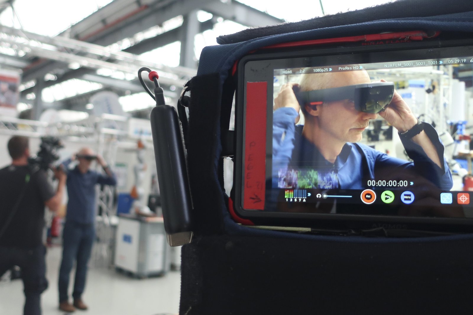 Folge 76Dr. Tim Schwartz vom Deutschen Forschungszentrum für Künstliche Intelligenz (DFKI) in Saarbrücken testet eine Augmented-Reality (AR) Brille. Mit einer AR-Brille können digitale Schutzzäune für Arbeiter errichtet werden.Bild: © ServusTV / Bilderfest