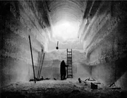 Folge 136Camp Century in Grönland – ab 1958 begannen die Bauarbeiten für die Stadt unter Eis. Gräben wurden in Schnee und Firn gefräst, entstehen sollten 21 Tunnel mit einer Gesamtlänge von 3 Kilometern. Mit gebogenen Stahlplatten wurden die Tunnel stabilisiert, anschließend wieder mit einer acht Meter dicken Schneeschicht bedeckt. Am Ende blieben nur die Ausstiegsluken an der Oberfläche sichtbar.Bild: © U.S. Army