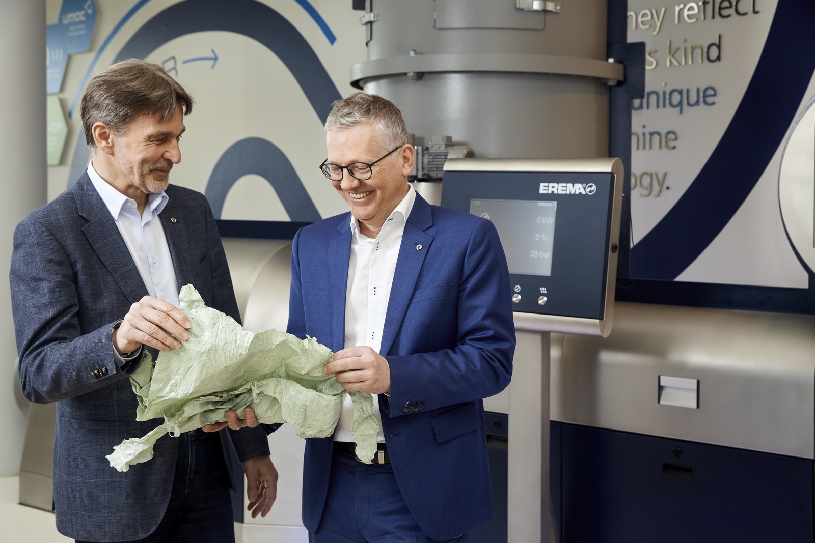 Folge 33Altes Plastik kann dank ihrer Erfindung in hochwertige Produkte umgewandelt werden: die österreichischen Ingenieure Klaus Feichtinger (l.) und Manfred Hackl (r.).Bild: © Servus TV / Bilderfest GmbH / Heinz Troll
