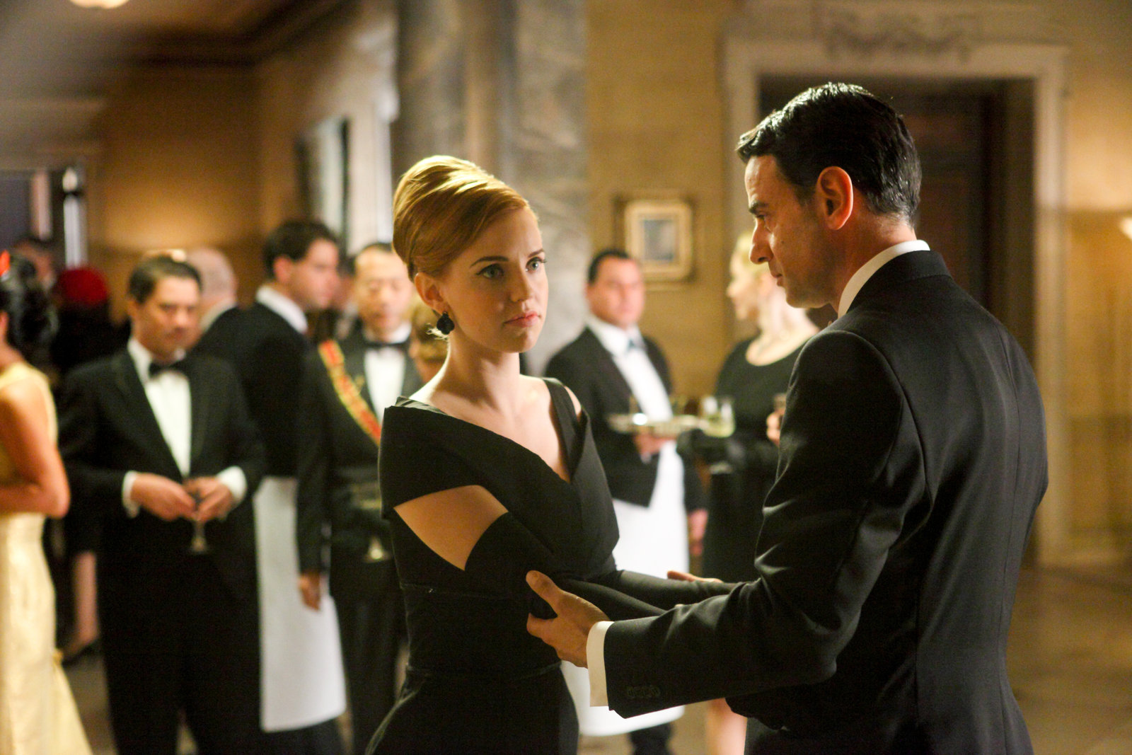 Hinter dem Eisernen Vorhang"Pan Am", "Hinter dem eisernen Vorhang." Pan Am plant, zu expandieren. Als erste westliche Fluglinie will sie regelmäßig Moskau anfliegen. Anders als erwartet, ist Dean diesmal nur Copilot. In Russland versucht Kate eine Kontaktperson ausfindig zu machen, als plötzlich ihre Schwester und Bridget vom Geheimdienst wegen Spionage festgenommen werden. Der Rest der Crew sitzt im Hotel fest. Unterdessen begleitet Maggie den Abgeordneten Rawlings auf eine Spendengala und hofft, dass es ihm verborgen bleibt, wer den Hetzartikel gegen ihn verfasst hat.Im Bild (v.li.): Annabelle Wallis (Bridget Pierce), Margot Robbie (Laura Cameron).Bild: © ORF2